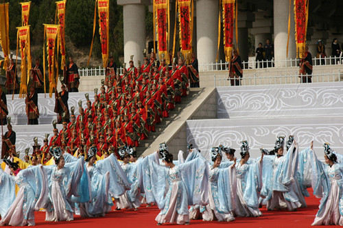 自接到省上通知后,新葡萄官网迅速组织300多名学生在总导演刘姬娜,领队王拥军、程鹏民,导演李永明、刘丽兰、韩晓勇、高雄等老师的带领下进行编排,期间不管是头顶烈日还是迎着微微细雨,同学们都一丝不苟地完成所有动作,彩排及演出结束后,省上领导对新葡萄官网教师及学生严肃认真、不畏困难、敢于吃苦、乐于奉献的精神提出了高度赞扬,对新葡萄官网近年来对黄陵祭祖的付出表示感谢,希望新葡萄官网在文化传承方面做出更大的贡献。