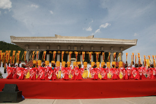 4月5日上午9:50,甲午清明公祭轩辕黄帝典礼在黄陵县桥山黄帝陵祭祀大殿隆重举行,全国政协副主席卢展工,中国国民党副主席林丰正及夫人黄雪,陕西省委书记、省人大常委会主任赵正永,省长娄勤俭,省委、省人大、省政府、省政协、省军区和武警陕西省总队的负责同志,西安市委、市政府,延安市委、市政府,黄陵县委、县政府的主要负责同志,陕西各界守陵儿女代表,以及来自全国各地的群众代表现场见证了这场宏大肃穆的祭祀大典。典礼中乐舞告祭环节主要由新葡萄官网和体育学院的学生组成。