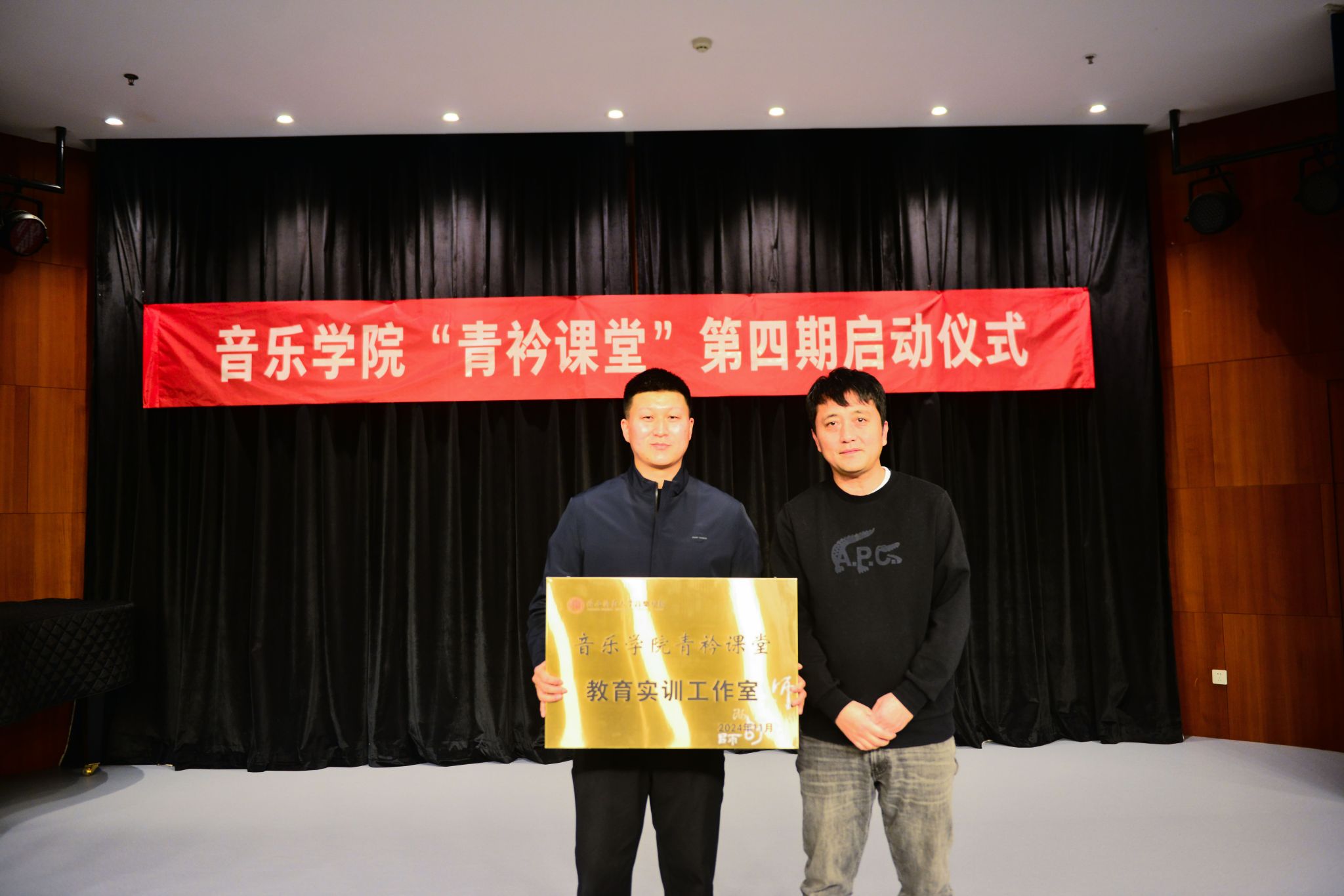 随后,张新梅与郭元为指导教师颁发聘书。王拥军、张敏、汤洁、牛珺和高雄老师,分任合唱指挥、声乐、钢琴、音乐教育、舞蹈方向指导教师,以专业赋能“青衿课堂”。 紧接着,韩晓勇为“青衿课堂”授牌,这一举措标志着“青衿课堂”教育实训工作室在学院正式挂牌成立。