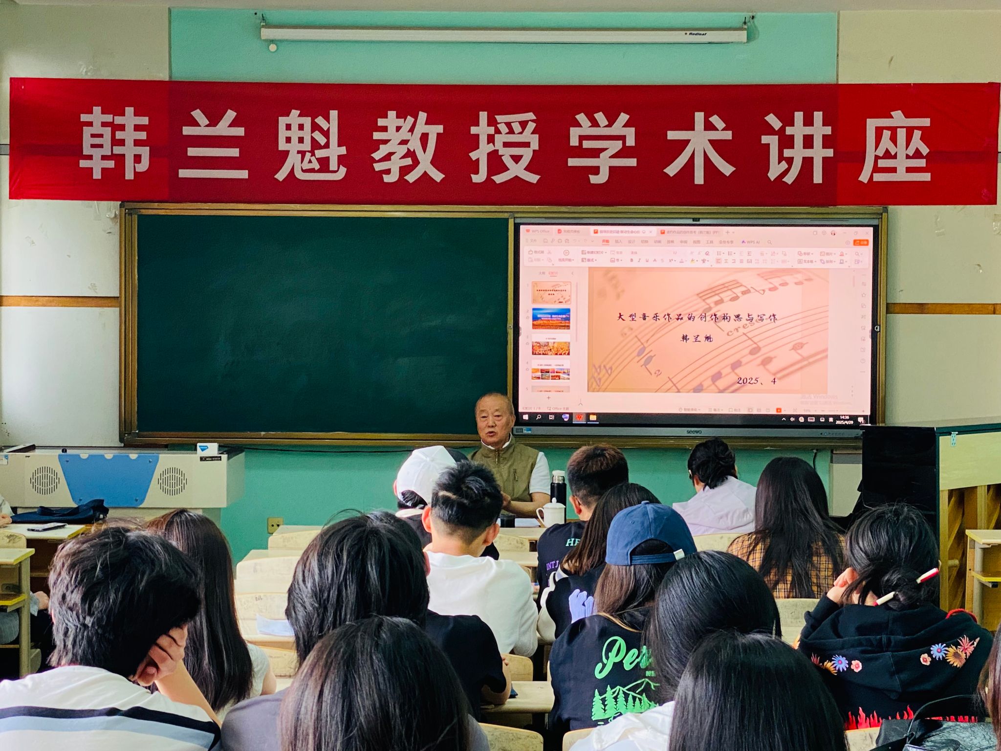 4月29日下午,西安新葡萄8883官网AMG作曲系韩兰魁教授应邀在六艺楼616教室为新葡萄官网师生带来学术讲座,主题为《大型音乐作品的创作构思与写作》。讲座由新葡萄官网张智军副教授主持。