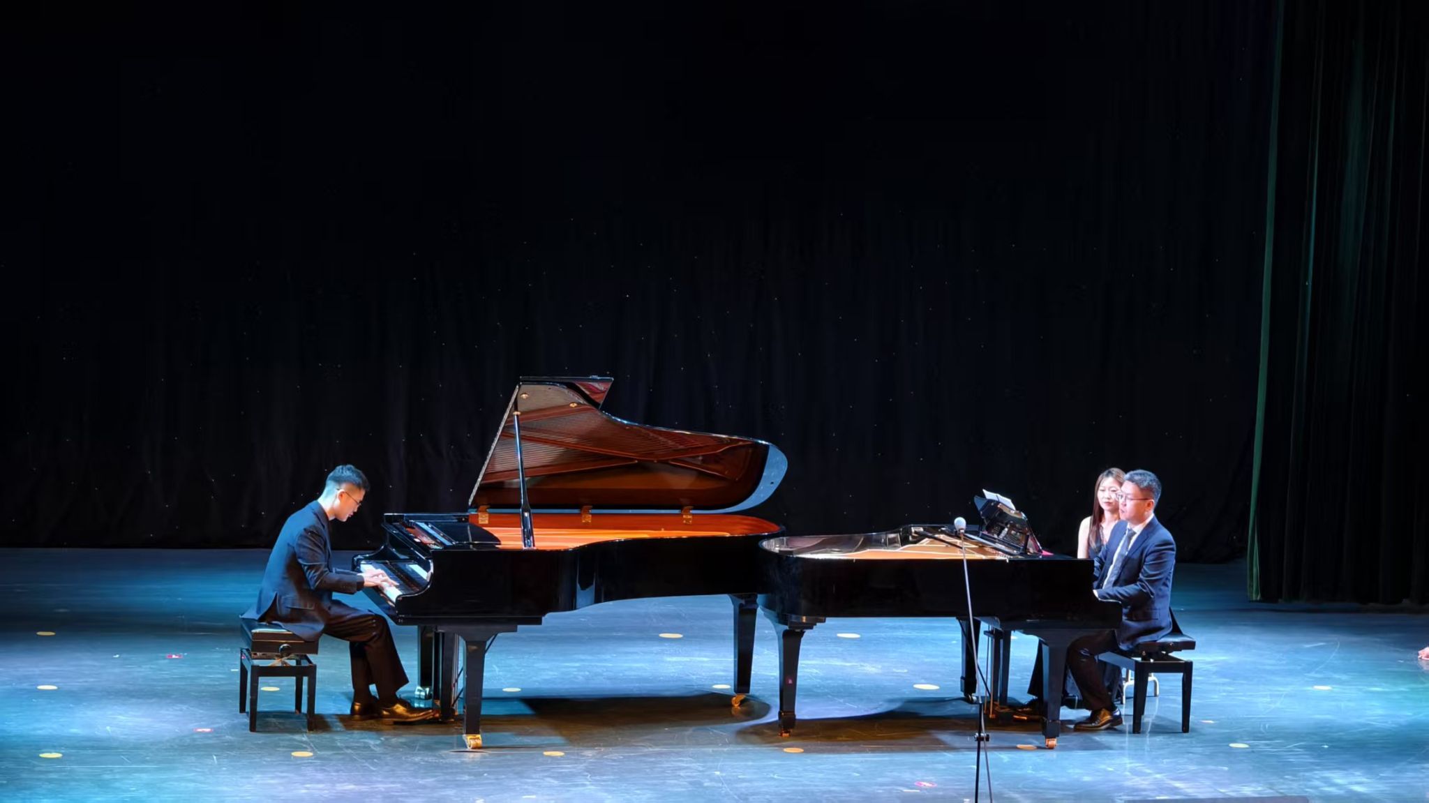 6月20日晚上,“纪念中国人民抗日战争暨世界反法西斯战争胜利80周年”主题音乐会在陇东学院大礼堂精彩上演。新葡萄官网优秀师生与陇东学院教师同台献艺,音乐会在钢琴协奏曲《黄河》拉开帷幕,声乐、民乐、舞蹈等节目异彩纷呈,音乐会以歌曲《我和我的祖国》落下帷幕,为现场观众呈现了一场高水准的艺术盛宴。特别是两校师生共同演绎的红色经典曲目,将现场气氛推向高潮。
