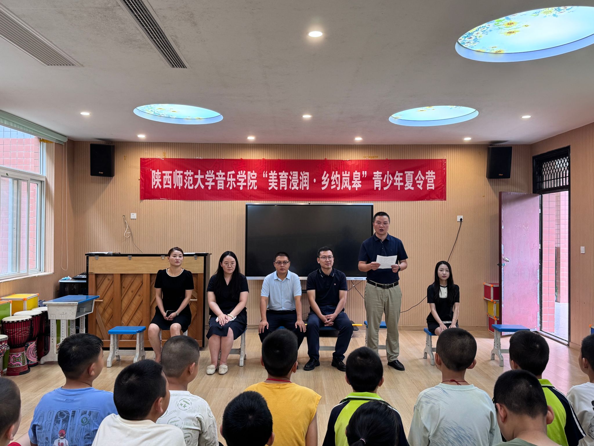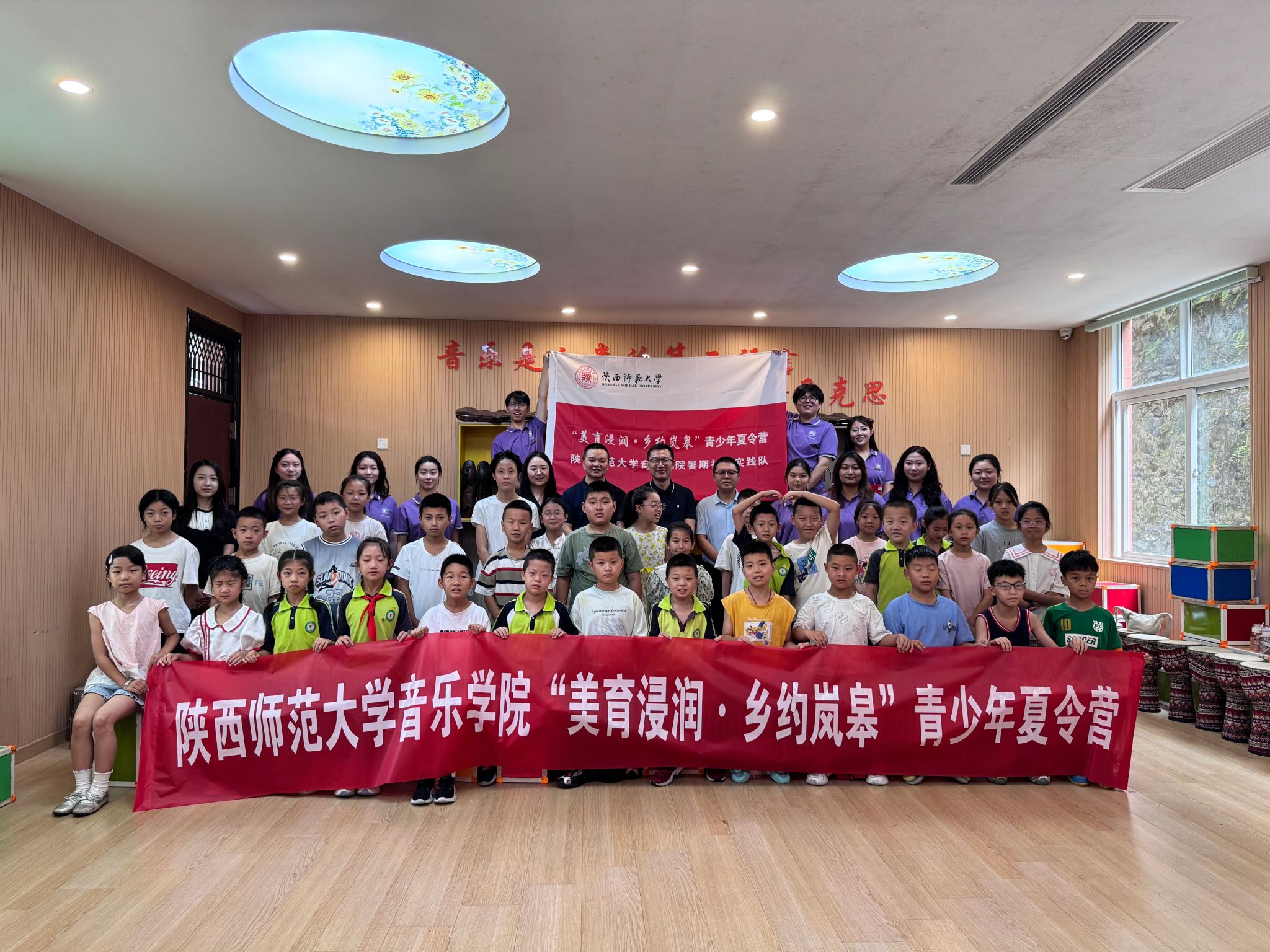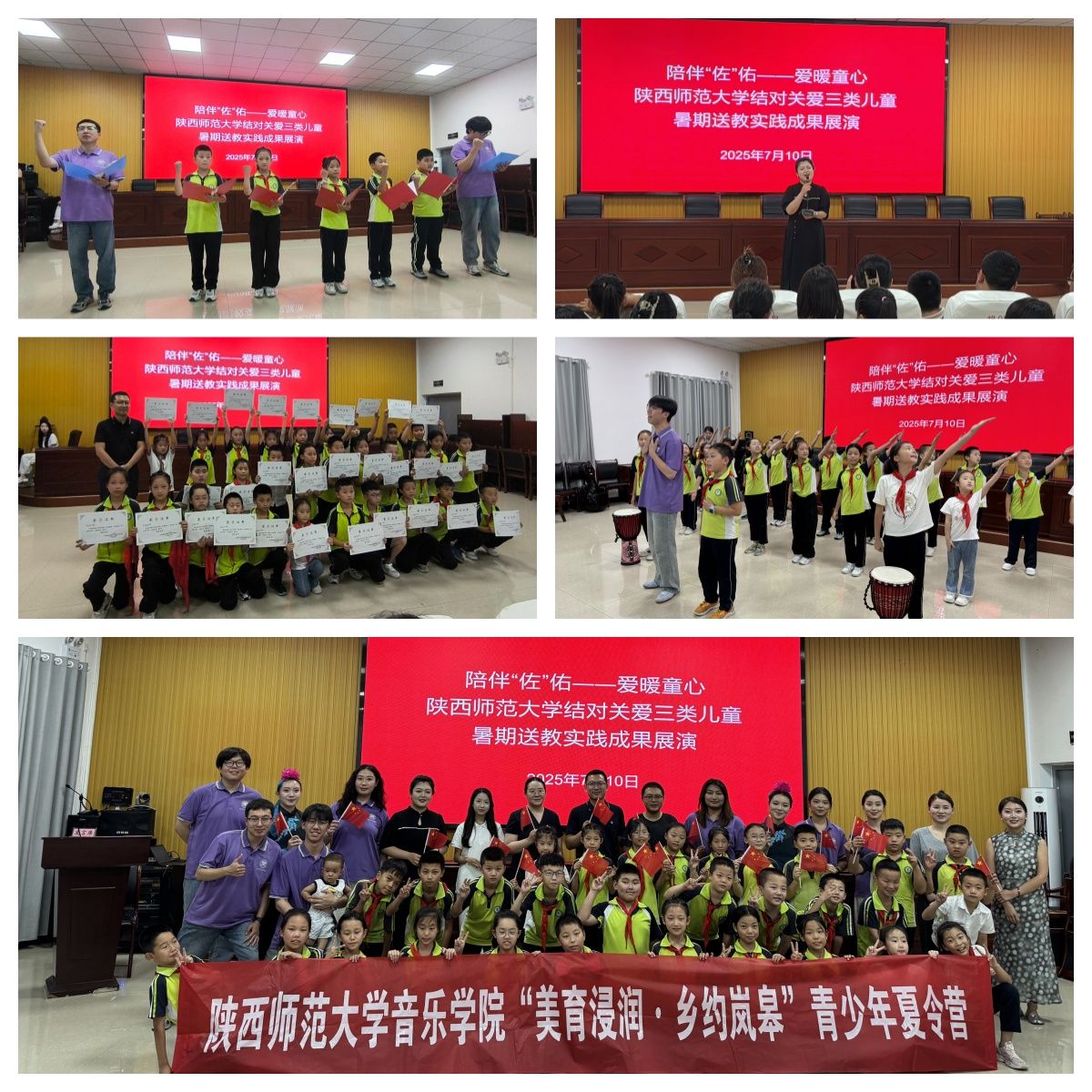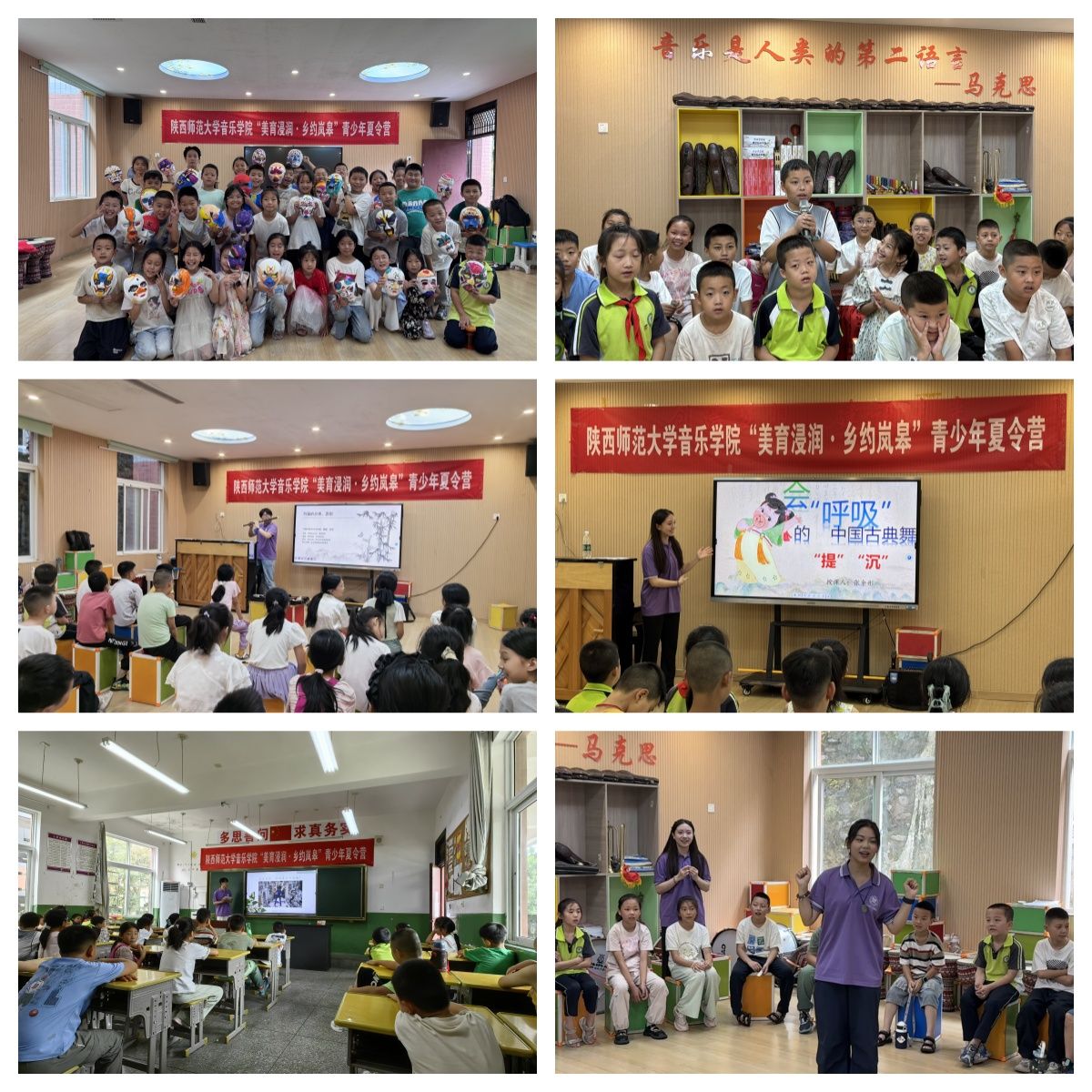 此次夏令营分为四个板块,一是依托陕西师范大学教学资源,开设“音乐侦探社”“会呼吸的古典舞”“变身戏曲达人”“跟着音乐游祖国”等10余节“美育浸润”课程;二是合理利用佐龙自然资源,打造“自然—乡土—艺术”相融合的移动艺术场景,将美育课堂延伸至山间、文化广场等场域;三是创新佐龙传统文化资源,开展基础艺术课程与佐龙非遗“晓道竹马”相融合的双轨美育课程,弘扬中华美育精神,坚定文化自信;四是联动佐龙乡村美育资源,举办“陪伴‘佐’佑·爱暖童心”——陕西师范大学结对关爱“三类儿童”暑期送教实践成果展演,用铿锵有力的歌声、青春激昂的舞姿、朴实真情的语言展示着夏令营的教育教学成果,也是推进乡村美育高质量发展的生动实践。