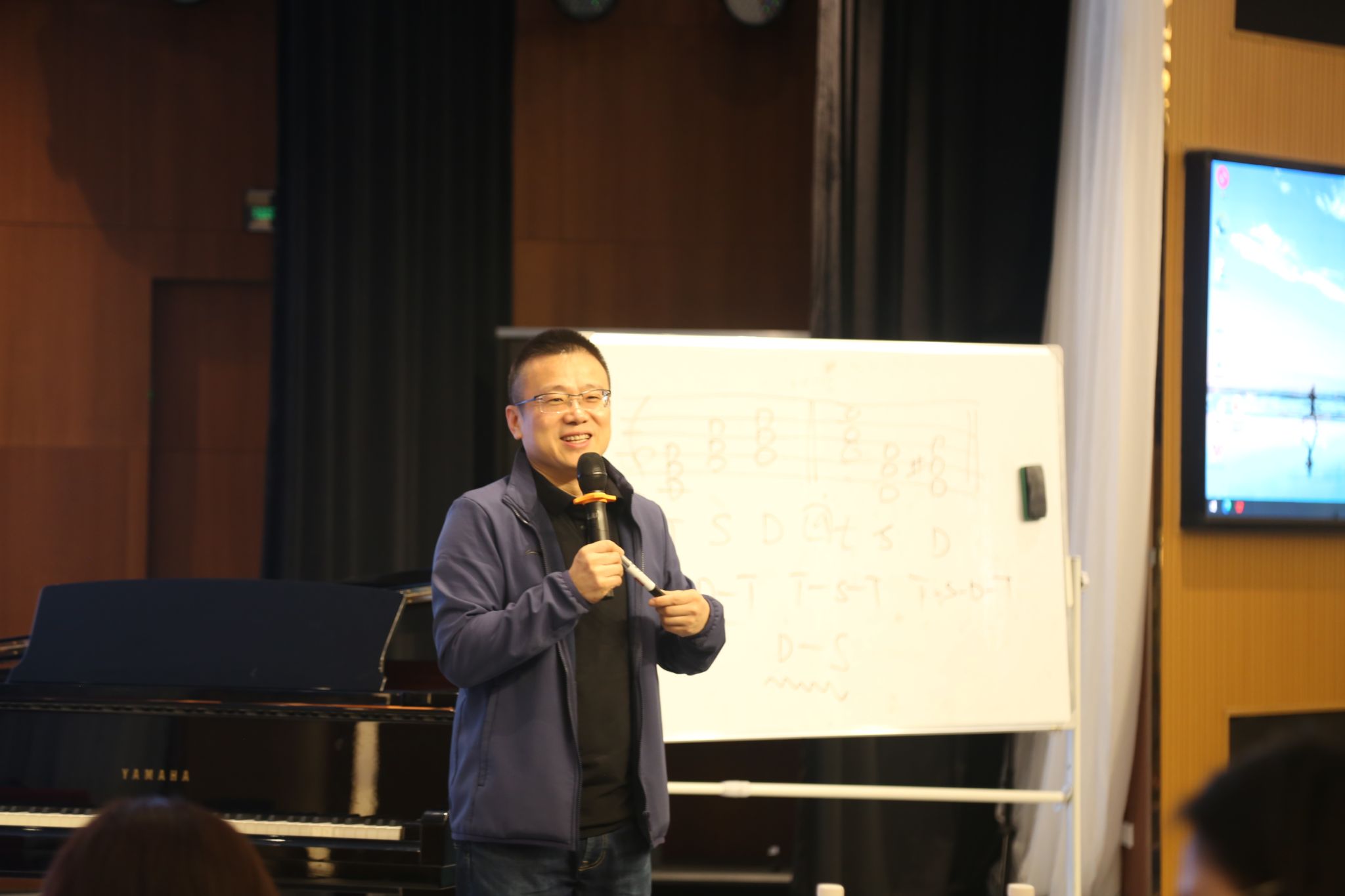 讲座中,张教授与多位学生进行了即兴演奏与音乐创作的互动,并在旋律发展、伴奏设计及创作思路等方面给予了现场教学与个别指导。讲座尾声,张教授通过现场即兴创作音乐动机与片段,将全场氛围推向高潮,展现了即兴创作的魅力与教学的实践意义。