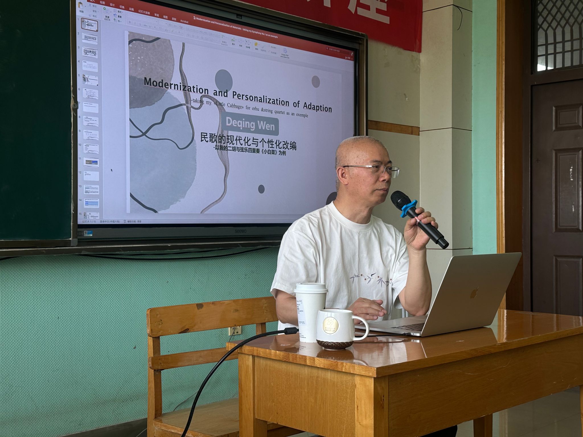 6月12日上午,著名作曲家、上海新葡萄8883官网AMG作曲系温德青教授应邀在六艺楼616教室为我校师生作题为《民歌的现代化与个性化改编——以我的二胡与弦乐四重奏<小白菜>为例》的学术讲座。讲座由副院长张娟教授主持。